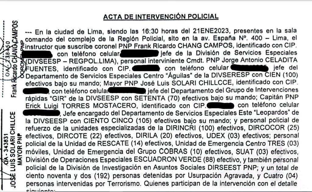 - Acta de Intervención Policial