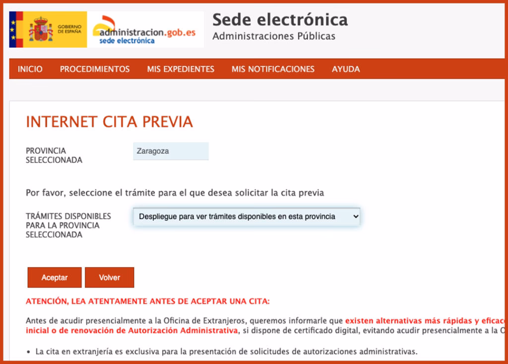 - Elige la provincia de tu residencia y haz clic en "Aceptar".