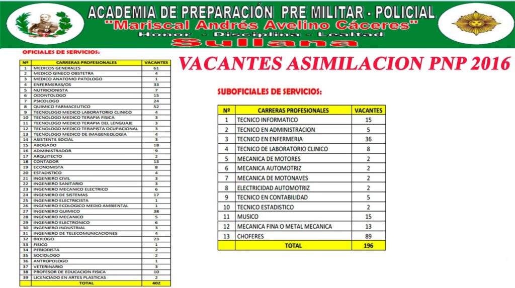 Sí, de hecho, la mayoría de las carreras solicitadas para la asimilación (medicina, ingeniería de sistemas, contabilidad, etc.) no están directamente relacionadas con la seguridad operativa, pero son vitales para el soporte y la gestión interna de la institución.