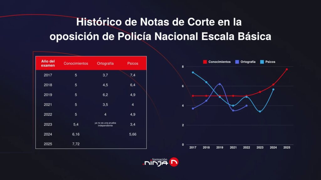 Analizar las notas de corte de convocatorias pasadas ofrece una perspectiva valiosa sobre la tendencia de la exigencia en la oposición a Policía Nacional. En los últimos años, especialmente en la prueba teórica, se ha observado una clara tendencia al alza, superando con creces el tradicional 5 sobre 10 que solía ser el aprobado mínimo.